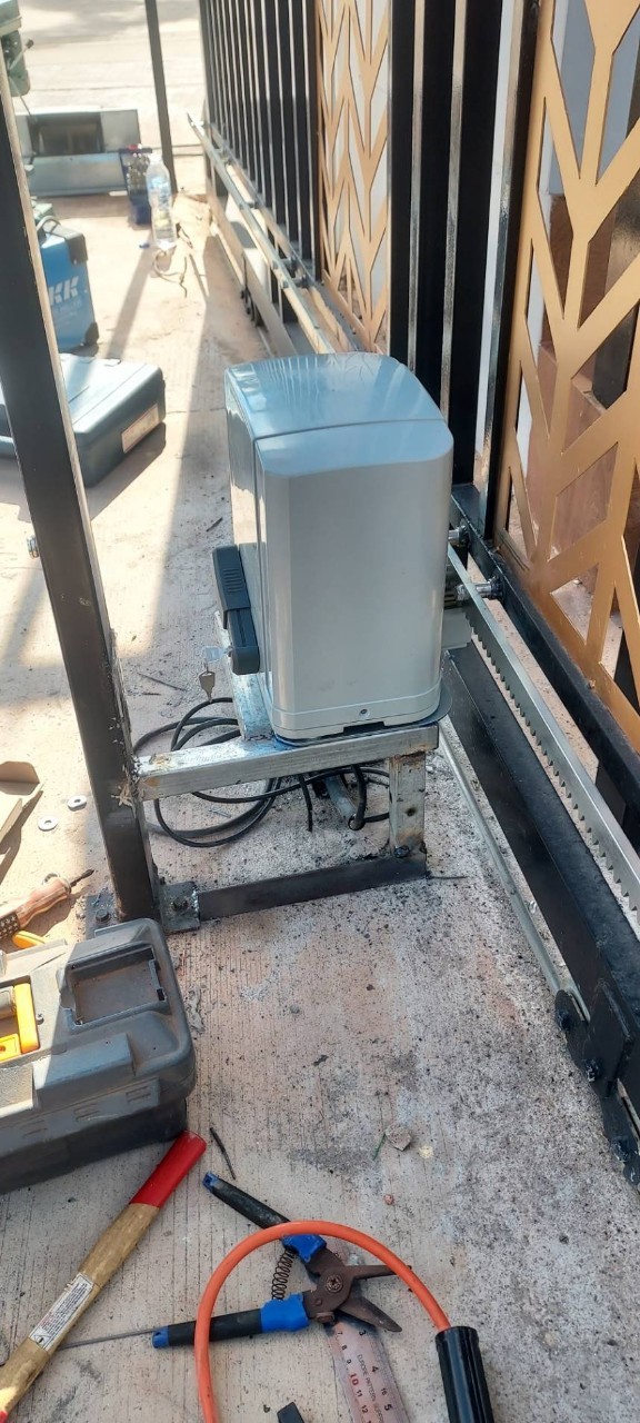 ประตูบ้านโครงการบรรจงเฮาส์ สมหวัง ประตูกระจก เฟรมมีเนียม บานเลื่อนชนกลาง กับกลอนประตูดิจิตอล รุ่น F07 สีบรอนเงิน