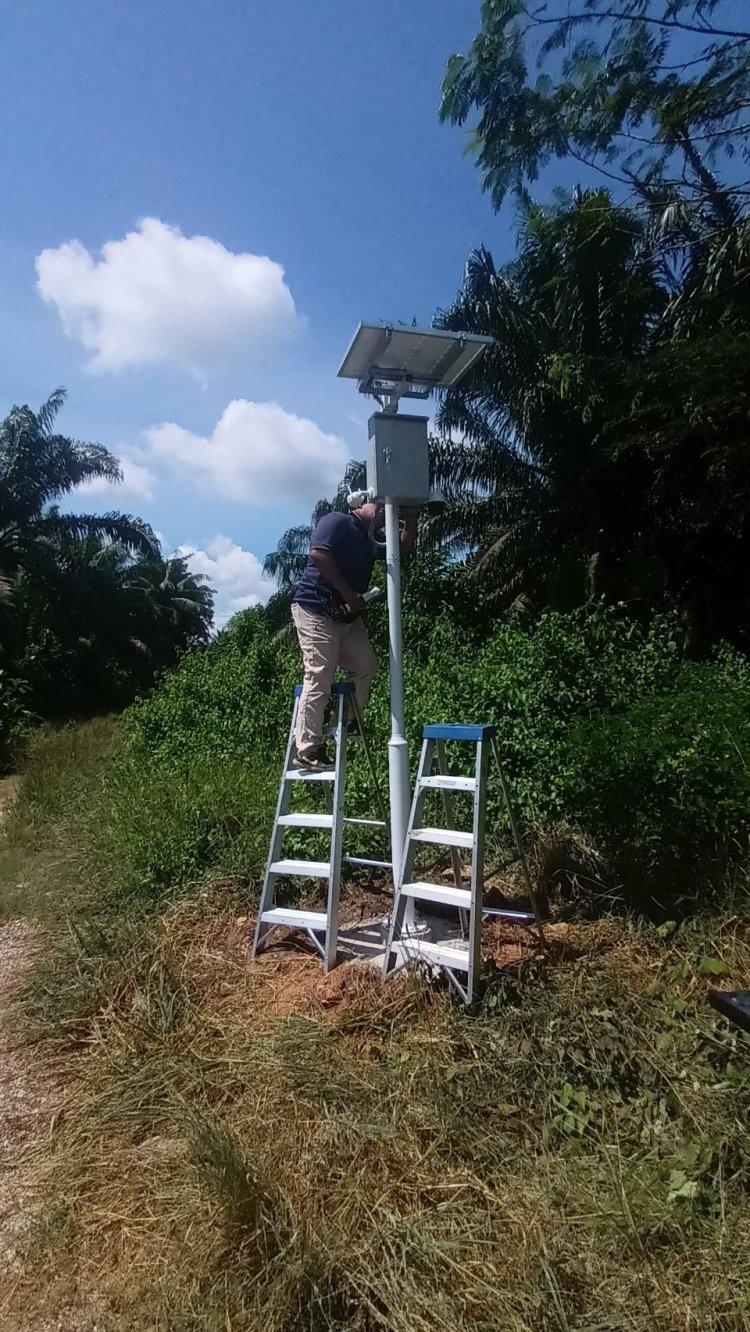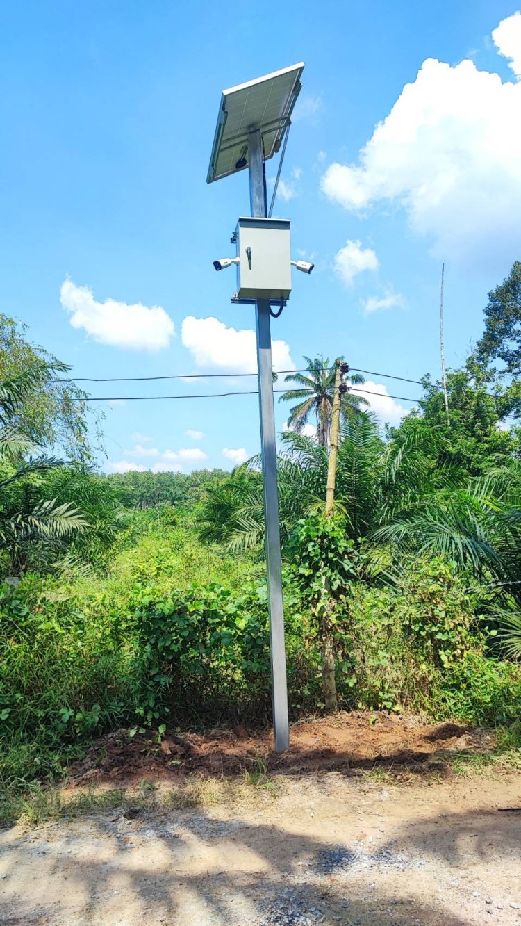 ภาพการติดตั้งกล้องวงจรปิดในสวนปาล์ม อ.ดอนสัก