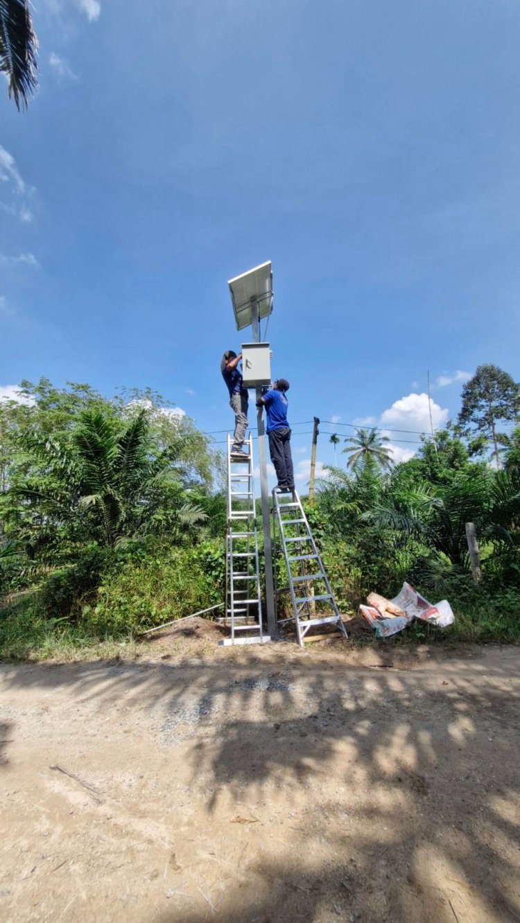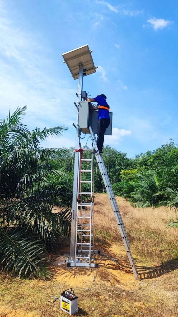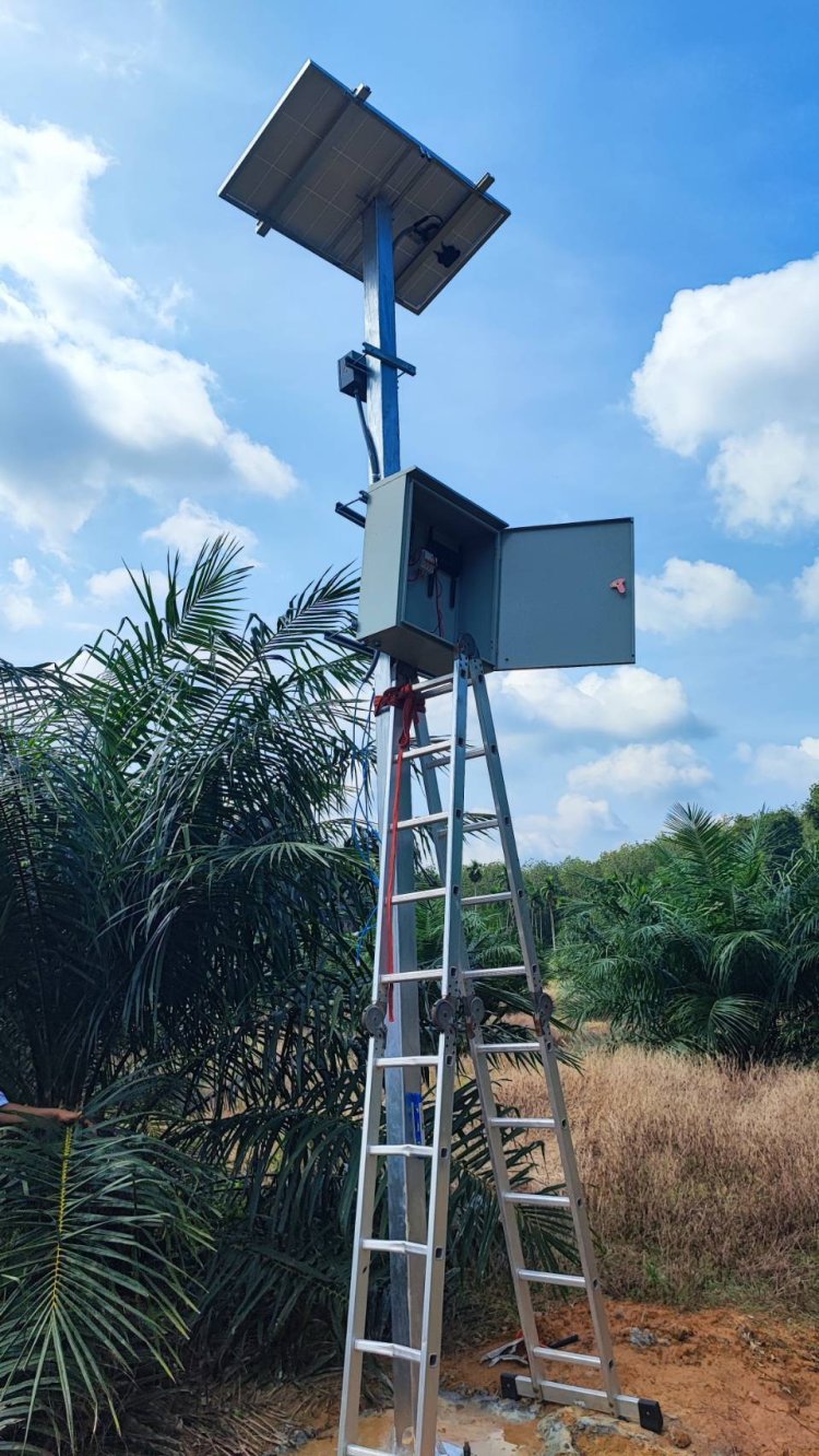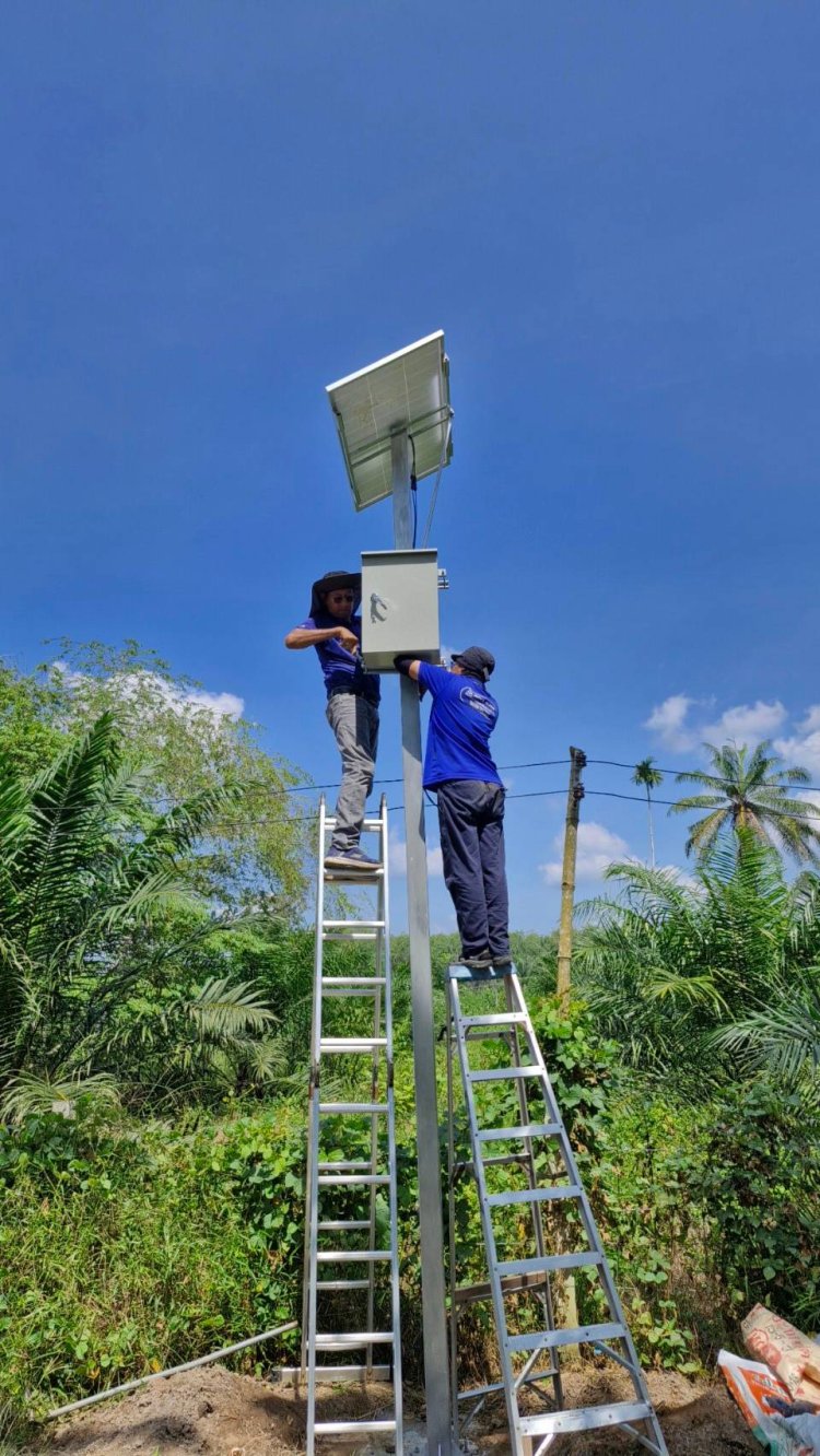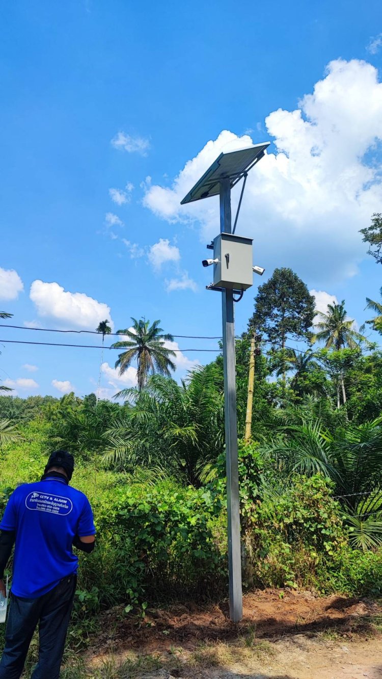 ภาพการติดตั้งกล้องวงจรปิดในสวนปาล์ม อ.พระแสง