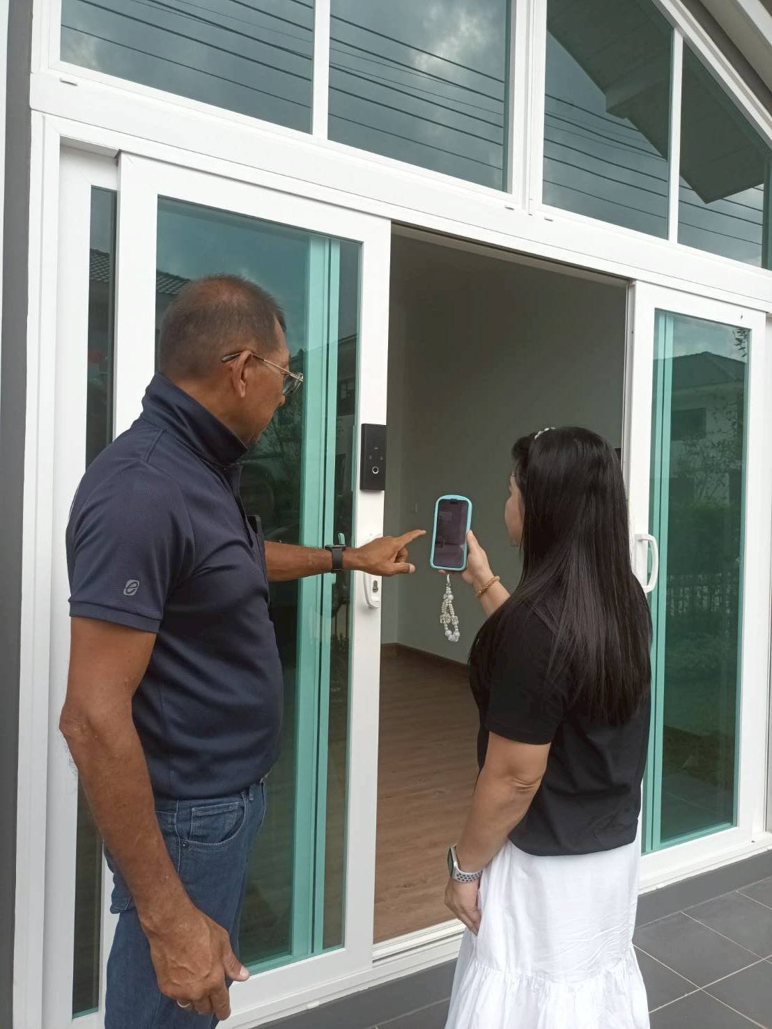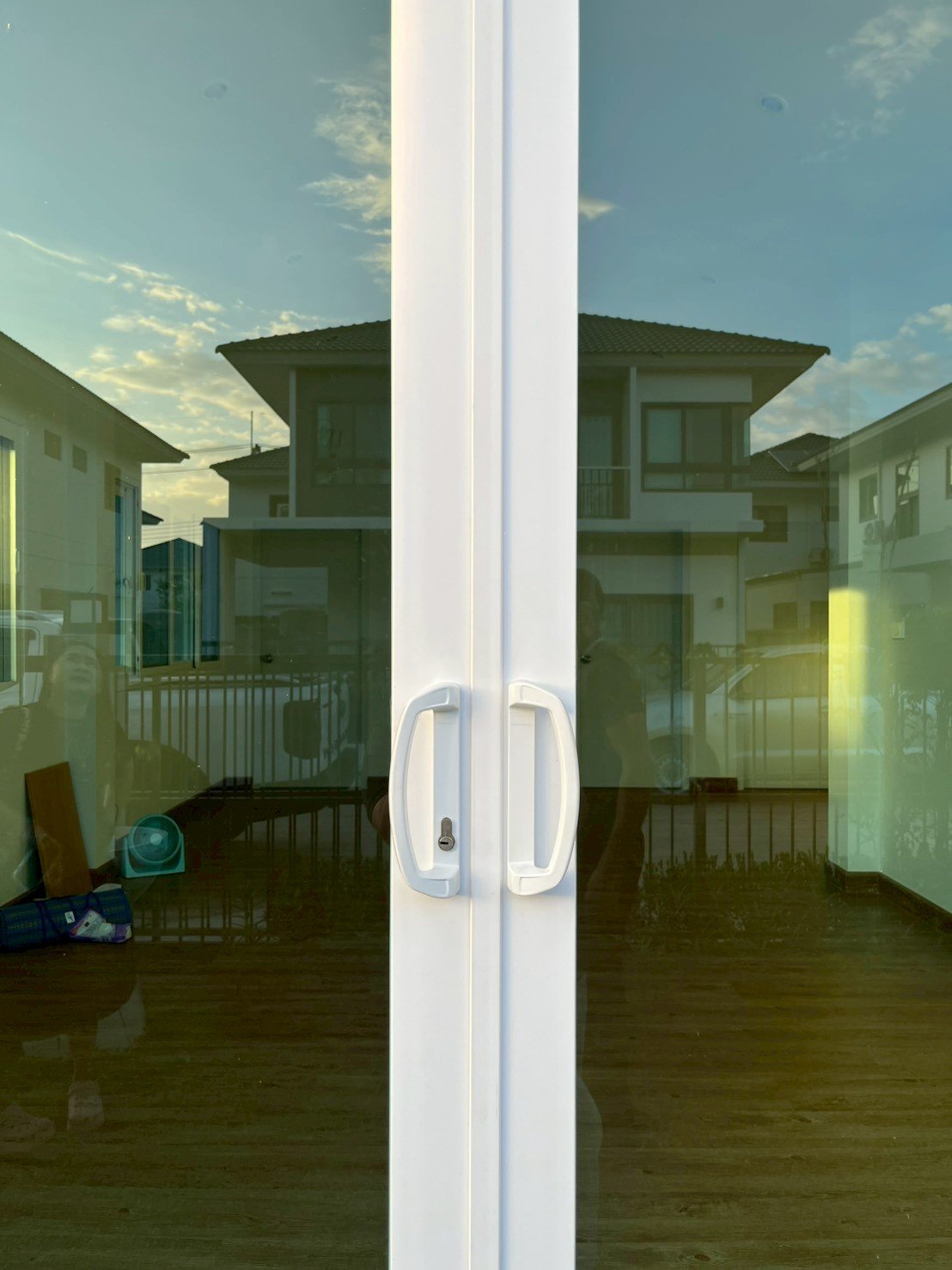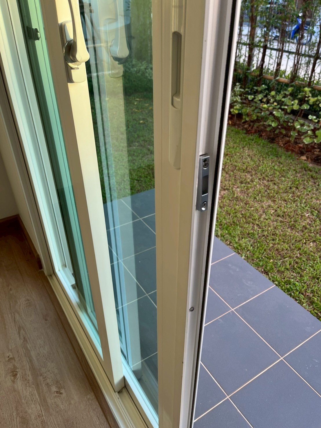 การติดตั้งกลอนประตูดิจิตอล แบบบานเลื่อนชนกลาง : โครงการศุภาลัยปาล์มวิลล์ สุราษฎร์ธานี